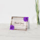 Un carte de remerciements à thème de campagne avec des marguerites en bois de grange et en gerbéra violet.
