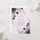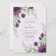This design features a delicate wash of light lavender across the background, accented by vibrant deep purple cosmos flowers. Rich sage green foliage and graceful sprigs of leaves adorn the edges, creating a romantic botanical aesthetic. This sophisticated watercolor artwork is perfect for a seasonal spring event, offering a striking contrast against the soft pastel backdrop.