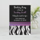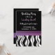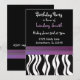 Un arrière - plan noir accentué par une bordure en zèbre blanc et noir avec une bande de violet aux bords ombragés. Customisez avec toutes les informations de votre anniversaire selon vos besoins.