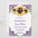 Elegant rustic purple and sunflower wedding invitation ideal for a purple rustic country, garden, backyard, or barn wedding party inspired by sunflower flowers. Matching items available to complement this purple floral wedding invitation.