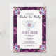 Fête des mariées Tea Party Invitation dans les fleurs vintages et la conception de théière avec des tourbillons violets, bordeaux, roses riches.