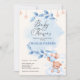Ein niedlicher Bär sitzt auf einer Wolke und hält blaue und beige Ballons