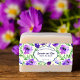 Diese Seifenband ist mit violetten Blumen und grünen Blätter im Hintergrund ausgestattet und bietet Platz für Ihre Zutaten, Ihren Firmennamen und Ihre Website.