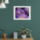 Das Poster wird mit einem Foto aus violetten Blumen und einer Biene gezeigt. Passen Sie dieses Objekt an oder kaufen Sie, wie es ist. Bild