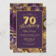 Elégant or violet gemstone 70e fête d'anniversaire Invitation. L'invitation de 70e anniversaire a un design chic or et marbre violet en pierre de taille et les numéros 70 sont dans le style ballon en feuille d'or.