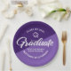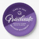 Be proud, rejoice and showcase this milestone of your favorite grad! Celebrate with these simple, modern yet retro, minimal custom paper plates. Bold, graphic, white handwritten script calligraphy, sans serif typography and a white hand drawn grad cap icon overlay both a dusty and deep purple background. Personalize the custom text with your grad’s name and address. Personalize the custom text with your graduate’s name, class year and school or special message. Available in 2 sizes: 7” or 9”, round or square. Matching invites, thank you cards, hand fans, banners, yard signs and other graduation goodies are also available in this retro and trendy collection. Guaranteed to add stylish fun to their special party!
