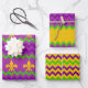 PURPLE GREEN YELLOW MARDI GRAS PATTERNS GESCHENKPAPIER SET