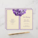 Lavande et crème, programme de cérémonie mariage. Plié avec du texte personnalisé sur quatre côtés, créez ce programme magnifique à utiliser pour un mariage d'été, jardin. Une grande et jolie hydrangée violette orne le haut et apparaîtra sur les pages avant et arrière. Inclure une note de remerciement au verso.