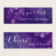 En utilisant une police de script magnifique et ornée, j'ai créé des éléments de typographie pour les mots "laissez-nous vous acheter un verre" d'un côté et "applaudissements" de l'autre. Tous les autres textes sont rendus ici dans une police serif polyvalente qui peut aussi être facilement modifiée selon vos souhaits. La copie de l'espace réservé avant indique "Good for One Adult Beverage" et l'arrière a une place pour vos noms. L'arrière - plan présente une image élégante, violette et marine ombragée de scintillement, étincelante reflet de la lumière du bokeh. Tous les calques sont déverrouillés afin que vous puissiez modifier et personnaliser cette carte hautement personnalisable selon vos besoins. N'hésitez pas à contacter si vous avez besoin d'aide pour customiser cette carte ou si vous avez des demandes spéciales pour les pièces correspondantes. // 19 //