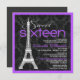 Cute, tendance et moderne violet damask & invitation sweet sixteen tour Eiffel.