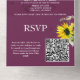 The “Purple Plum Sunflower QR Code All-in-One Invitation” beautifully blends rustic charm with modern convenience. Featuring vibrant yellow sunflowers paired with deep plum and purple tones, it creates a rich, romantic palette perfect for fall or countryside weddings. The all-in-one design keeps everything elegantly organized, combining the invitation, RSVP, and details section in one seamless layout. A custom QR code adds a contemporary touch, allowing guests to easily access your wedding website or RSVP online. Printed on premium-quality cardstock, it offers a smooth texture and luxurious feel. The contrast of golden florals against the plum background evokes warmth, love, and celebration. Its foldable, self-contained format makes it both eco-friendly and budget-conscious without sacrificing style. A stunning invitation that perfectly unites rustic elegance and modern functionality