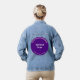 Veste en denim pour femmes avec votre nom d'entreprise, logo, ville ou ville et état. Veste que vous pouvez inclure dans vos produits promotionnels, cadeaux ou cadeaux offerts à vos clients ou clients pour faire de la publicité à votre entreprise ou pour promouvoir votre marque. Veste avec votre marque d'entreprise que vous pouvez utiliser pour développer la sensibilisation de marque. Veste en uniforme aussi de votre personnel. Les couleurs design sont des textes roses sur arrière - plan rond violet. Veuillez vérifier l'apparence après avoir téléchargé le logo et tapé des textes sur la taille que vous avez choisie. Si l'apparence vous plaît, vous pouvez passer votre commande maintenant. Si vous avez besoin de redimensionner et déplacer le logo et les textes, s'il vous plaît changer dans l'outil de conception. Vous pouvez également modifier le style de police, la couleur de police et la couleur de l'arrière - plan de forme ronde dans l'outil de conception.