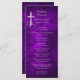 Cette élégante carte de programme de mariage comporte deux coeurs d'argent au pied d'une magnifique croix d'argent au coin supérieur gauche. Les images de croix et de coeur brillent contre un arrière - plan abstrait violet royal. Il y a beaucoup de place pour votre texte customisé, également en argent. Si vous devez modifier la police, la taille, l'emplacement ou la couleur du texte, utilisez Personnaliser. Le dos de l'invitation a le même arrière - plan violet sans le texte ou les images.