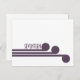 Carte postale moderne et sophistiquée Simple Deco Chic Table Number en violet avec une paire d'ornements design de cercle art déco. Cette carte postale mariage mod donnera le ton à une affaire élégante. Facile à customiser, il suffit d'ajouter le ou les numéros de table appropriés dans le champ de texte fourni. Cliquez sur le bouton "Customiser" pour trouver d'autres options de personnalisation.