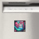 Magnet mit dem Bild einer Katze als Meerjungfrau oder Raubtier umgeben von Meereslebewesen.