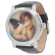 Uhr, Vintage Männeruhr mit schwarzem Lederarmband