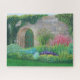 Eine schöne englische Gartenlandschaft mit Steinmauer, Tor, Weinreben und Blume. Das wird ein herausforderndes Rätsel, da es viele Grüntöne und warme Grauen gibt.