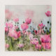 Ce dessin est composé d'une aquarelle représentant des fleurs roses de pavot dans un champ.