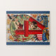 Puzzle de 11" x 14" avec une image vintage en 1908 d'un jeune garçon assis en cercle sur l'herbe entouré de feux d'artifice, certains éclairés, et d'un canon tiré. Sa tête est encadrée par un numéro quatre fait de pétards rouges. En haut, une bannière bleue, un aigle chauve américain, un bouclier américain et un "juillet" en lettres d'or. Consultez la collection de puzzle du Jour de l'Indépendance dans la catégorie HOME de la section HOLIDAYS.