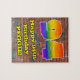 Ce graffiti urbain amusant et passionnant et le street art thème de jigsaw puzzle design dispose d'un grand nombre de "94" avec un motif coloré du spectre arc-en-ciel inspiré, avec le message "Happy 94th Birthday," et un nom personnalisable. L'arrière - plan dispose d'un motif mural en brique. Un puzzle d'anniversaire dynamique et personnalisable comme celui-ci pourrait être une façon amusante d'envoyer un message de voeux d'anniversaire à quelqu'un qui célèbre son quatre-vingt-quatorzième anniversaire. [~Z0000545]