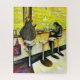 Original painting of two individuals are seated at a counter in a cozy diner. Bright yellow lighting illuminates the scene, creating a warm and inviting atmosphere. Painted by New York City, Fine Arts Artist, Gaye Elise Beda.
