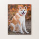 Un puzzle avec un Akita assis dans un décor d'automne.