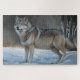 À propos de "Forest Keeper" - Un beau chef de meute de loups gris attend patiemment le mouvement dans la forêt voisine. J'espère que la chasse commencera.