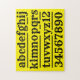 Un puzzle pour les enseignants. Un puzzle pour aider les jeunes enfants à apprendre l'alphabet et les chiffres. Un design avec l'alphabet et les chiffres en noir sur un arrière - plan jaune. C'est une bonne aide pédagogique pour quiconque travaille dans l'éducation.