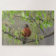 Puzzle American Robin Perché sur Branche avec fleurs prin