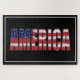 Va aux USA ! Texte AMERICA en couleurs de drapeau sur un arrière - plan noir.