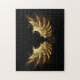 Des ailes d'ange doré brillantes sur un arrière - plan sombre. Des ailes dorées.