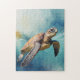 Image aquarelle d'un gros plan d'une tortue de mer nageant dans l'océan. Blues, tan et blanc dans l'arrière - plan