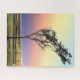 Un design artistique d'un arbre solitaire avec un ciel dramatique et des champs au loin.