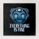 Illustration de dessin animé vectoriel d'un astronaute zombie aux grands yeux portant un casque spatial avec une visière fissurée dans des tons de bleu avec le texte Tout Va Bien. Tags : astronaute, cosmonaute, casque, zombie, espace, astronaute, monstre, cadet, cadavre, mort