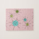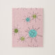 Ce motif atomique iconique rose de puzzle de Starbursts comporte les starbursts atomiques iconiques. C'est exact ! La vieille école, la première Madame Pink a coloré l'arrière - plan avec des taches d'or est le contexte parfait pour la turquoise vibrante, le céleri calmant, et les cercles colorés de vert kitschy de poire. Les taches de couleur sont sporadiquement placées dans diverses tailles avec recouvrir les lignes en forme de V noires pour former les starbursts de mod spoutnik. Dénommé après qu'un motif de plat des années 1950, cette rétro conception inspirée ait tout vous devez être vraiment la moitié du siècle moderne.