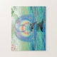 2 dauphins nageant dans l'océan près d'une belle augmentation de couleurs et de l'eau avec 2 planètes, une lune et un soleil coloré. Couleurs roses, bleues, d'aqua, jaunes et vertes dans l'eau et le ciel.