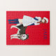 Nom personnalisé sur le puzzle avec une fille marchant chien husky.