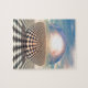 Profitez de cette oeuvre d'art numérique surréaliste en trois dimensions d'une sphère de métal réfléchissante reposant sur une surface de damier noir et bronzé.