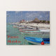 11" x 14" puzzle denteux avec une image des bateaux de pêche a amarré le long du rivage du village somnolent de Puerto Morelos, Mexique. Voyez la collection entière de puzzle du Mexique dans la section À LA MAISON.