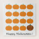 Un joli coin de citrouilles oranges festifs est rejoint par un joyeux petit bonhomme de vacances ou une lanterne à la fin de la ligne. Joyeux Halloween !