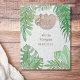 Une façon douce et mignonne d'annoncer la naissance du bébé. Cette scie est décorée de feuilles de jungle aquarelle et d'un bébé paresseux souriant. Aquarelle originale © Michele Davies.