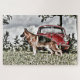 Ce berger allemand debout devant sa voiture de propriétaires est une belle image de cette race. Un puzzle stimulant pour des heures de plaisir. Créé par Cathy M Creations