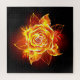 Blooming rose from fire and flame on black background.