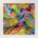 Des tourbillons vibrants de vert, jaune et violet mélangés à des touches énergiques d'orange et de rose, créant un sens dynamique du mouvement. La composition abstraite évoque un sentiment d'harmonie chaotique, attirant l'attention avec ses couleurs vives et ses formes audacieuses.