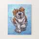 Animal Parade Cute St Bernard Dog Puzzle with Gift Box créé par Imagine That! Le design présente notre joli personnage de chien blanc et tan debout dans une cour herbeuse avec une clôture en briques rouges, un ciel bleu texturé et une bordure violette ondulée et ludique peinte par notre talentueux artiste de livres pour enfants, Traci Van Wagoner. Le petit amusant est en position de jeu avec une patte levée. Cet art amusant pour animaux de compagnie est parfait pour les amoureux de les chiens de St. Bernard et les amoureux de l'art animal humoristique de tous âges. Sur la plupart de nos somptueux produits pour chiens St. Bernard, vous trouverez ce mignon chiot qui va avec la tête de chien de Saint Bernard d'un côté et la queue de chien de l'autre. Rejoignez la Parade des animaux et souvenez-vous de quelqu'un que vous aimez avec un cadeau de notre mignon chien St. Bernard. Ouf !
