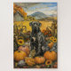 Célébrez la beauté de la chute avec cette peinture vibrante d'un chien assis à côté d'une généreuse moisson de Thanksgiving. Les riches couleurs d'automne des citrouilles, des tournesols et des paysages rustiques des fermes créent une atmosphère chaleureuse et accueillante, parfaite pour toute décoration saisonnière amoureux des chiens.