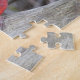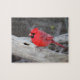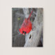 Bright cardinal pose sur le log, fait pour un puzzle difficile!