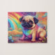 Doux petit Carlin bébé coloré avec des couleurs arc-en-ciel dans un monde d'imaginaire, style art imaginaire, Carlin mignon pour la chambre d'enfants, chambre bébé, chambre pour filles, Couleurs Carlin de démarrage