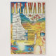 Carte postale colorée et vintage de l'Etat du Delaware réutilisée sur un puzzle 20x30.