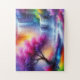 Contemporain tendance AI Généré Colorful Abstrait Art Moderne Purple Bleu Rouge Rouge Jaune Vert Forêt Cascade Paysage Peinture à l'huile Horizontale Puzzle.